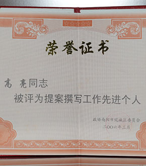 2006年高亮同志政協(xié)評(píng)為先進(jìn)工作個(gè)人