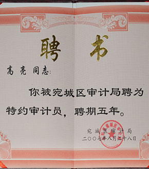 2006年11月被審計(jì)局特聘為“特約審計(jì)員”